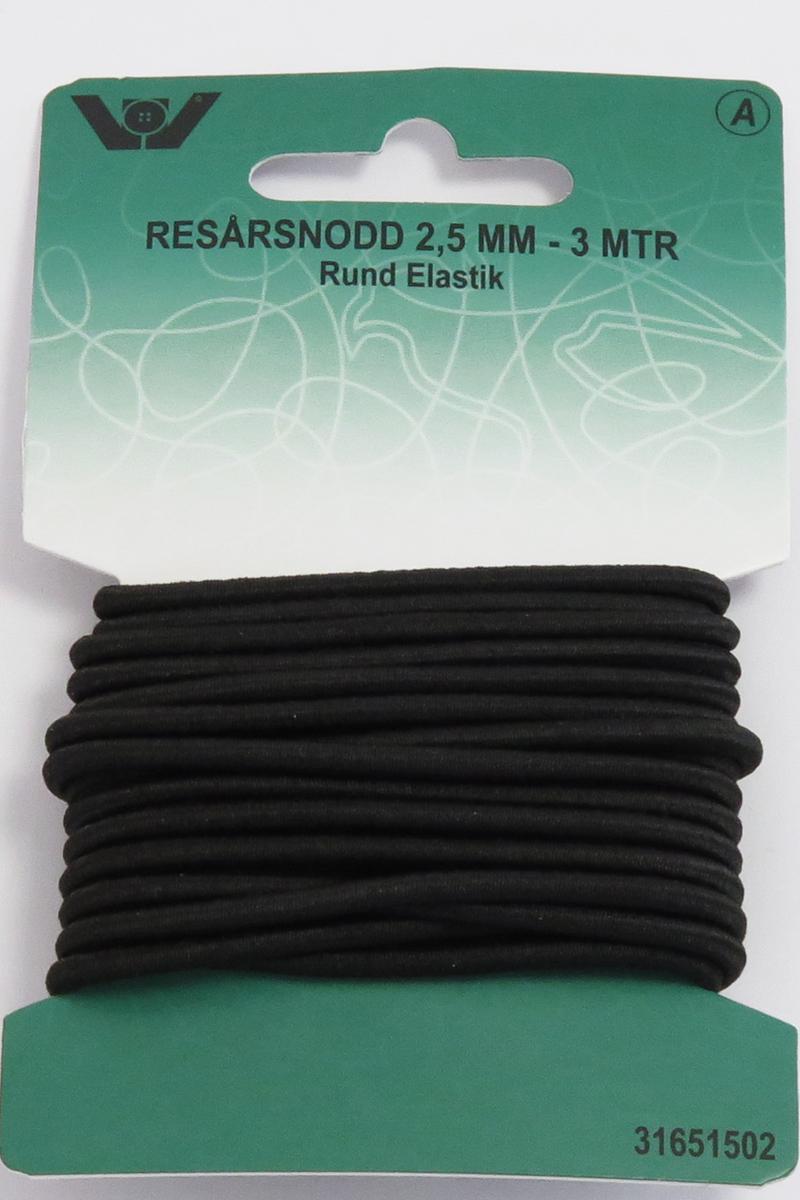 Elastik rund 2,5mm 3m svart